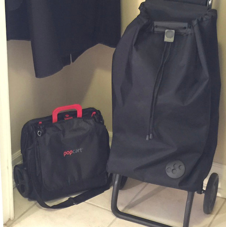 Use "popcart" shopping cart to carry groceries from the trunk of your car into your condo.